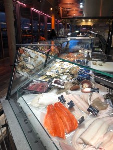 Back on the river track we meandered further to an area called Vulkan. The vibe here was less alternative and more hipster. We entered Mathallen, which is an indoor food hall – a bit like the Tram Shed for those familiar with Sydney’s inner west. There were butchers, deli’s, cheese shops, cake shops, coffee of course, bars, international cuisine specialty restaurants, wine and champagne bar. We stopped here for coffee (too early for bubbles) and discovered that if you want chocolate on your cappucino, you only have to ask, and that if you want a flat white you also have to ask. It wont be listed on the menu, but they will make it. The Norwegians love coffee and the coffee is actually pretty good. They always ask if you want one shot or two – go for the two.