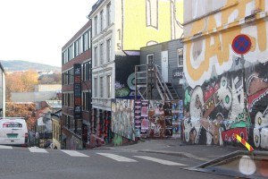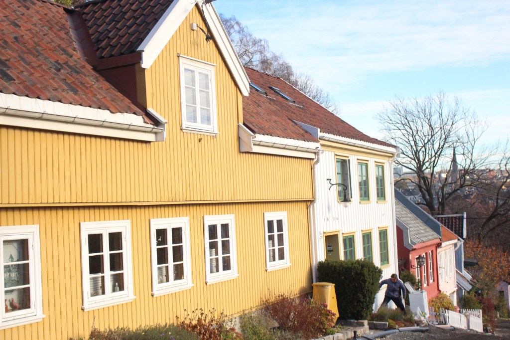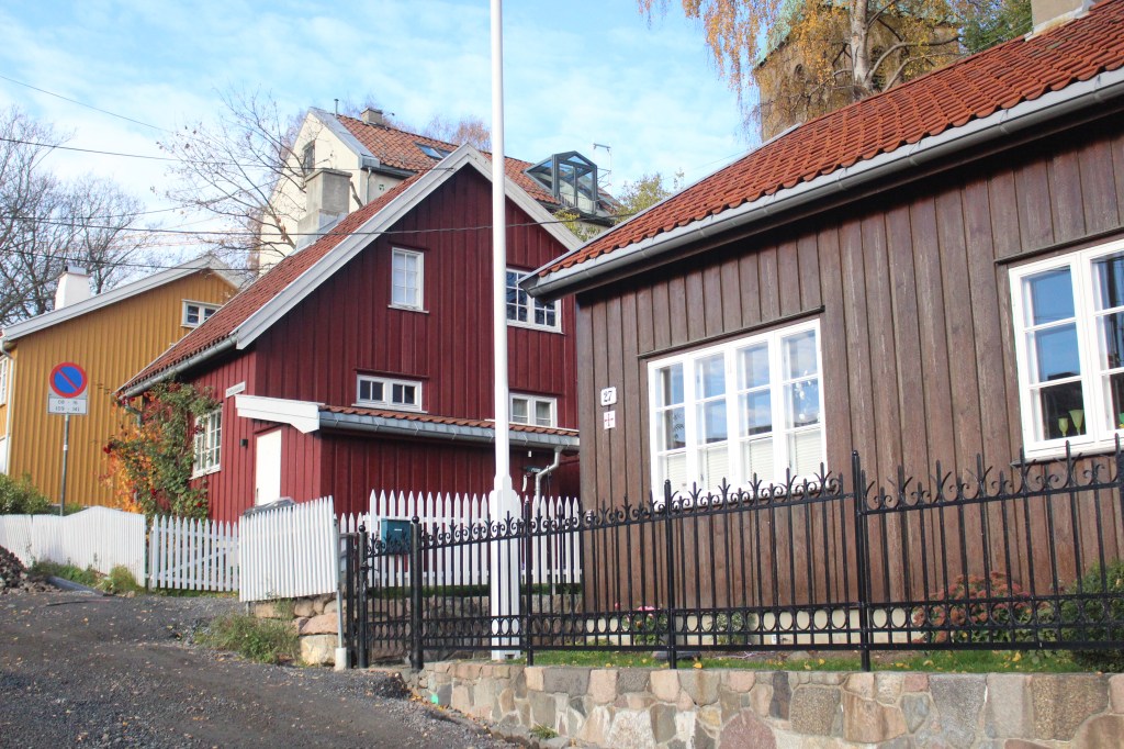On route back to the River took us through steep old cobbled street called Dopsgt with more of the traditional Oslo timber homes. The home on the corner of this street had Wergerlands name on it, but we couldn’t read what exactly the building was to him, whether home, studio, birthplace or something else. It was under restoration.