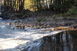 Back at the river we continued our journey north-ish. The temp was rising to about 6 degrees, we were warm enough to remove our beanies! A kind looking old man stopped to tell us some thing along the path…we couldn’t really understand, but he did manage the English words ‘salmon’ and ‘bridge’. As it turns out, at the next bridge there were a few people stopped all looking into the water. We joined them and saw the large salmon just swimming around happily. They were an easy 60-75cm long. Not sure how long they’ll be there as one of the spectators was stripping a stick down and sharpening its end…