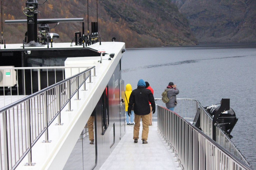 The ferry is Electric. When it pulled in it connected to what we now realise is in essence a huge power cord. The ferry is practically silent and doesn’t produce a wake behind it as it moves through the black water.