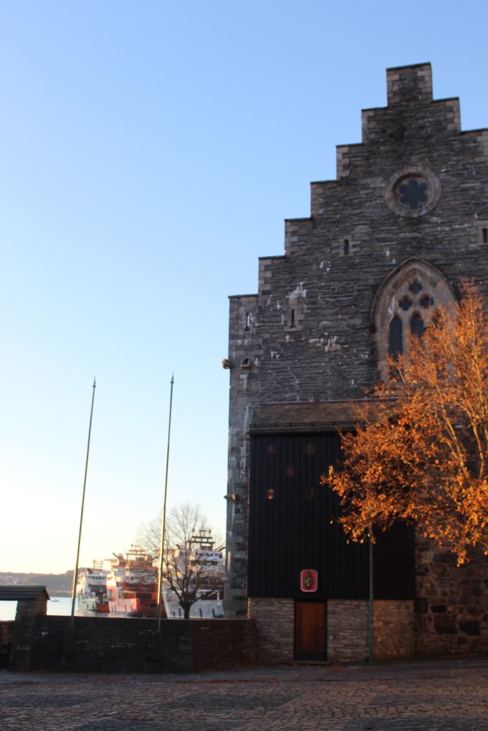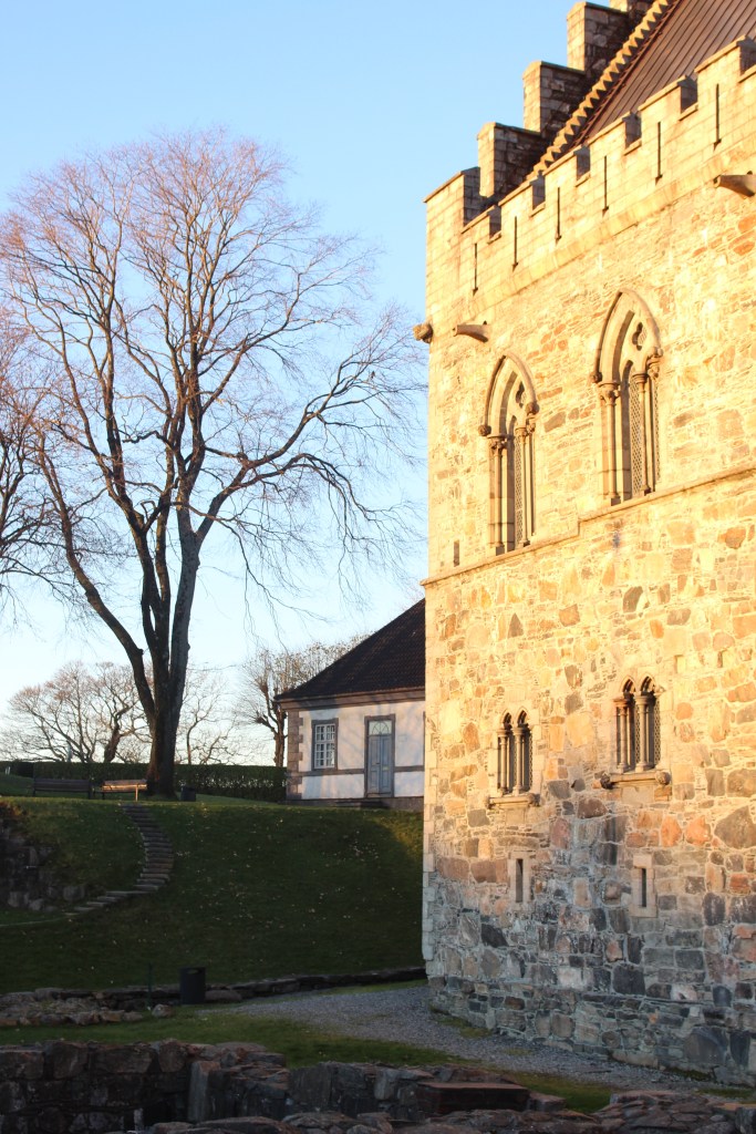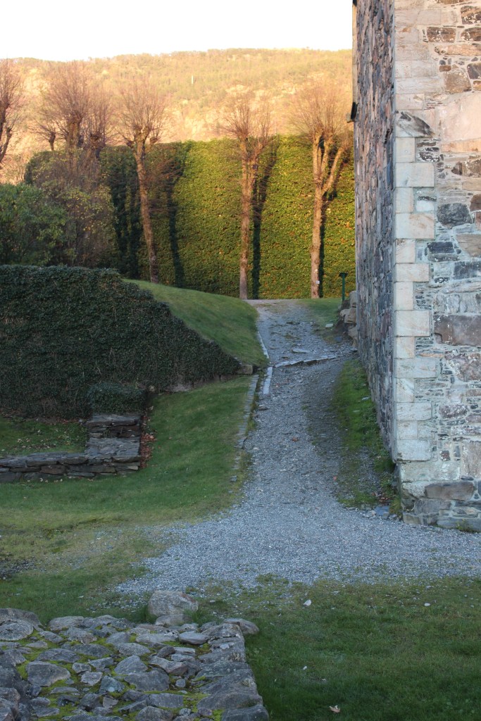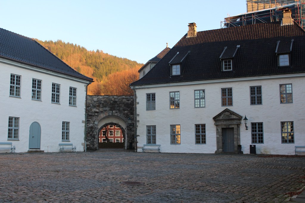We walked back to the Bergen Fortress which we thought was open until 5pm. We had a map for a self guided tour which we did, but unfortunately access to see inside the buildings closed at 3pm. Nevertheless, with the guide map and English information (courtesy of the helpful lady at the Berghaus Museum) we enjoyed the walk and environs of the Fortress Trail.