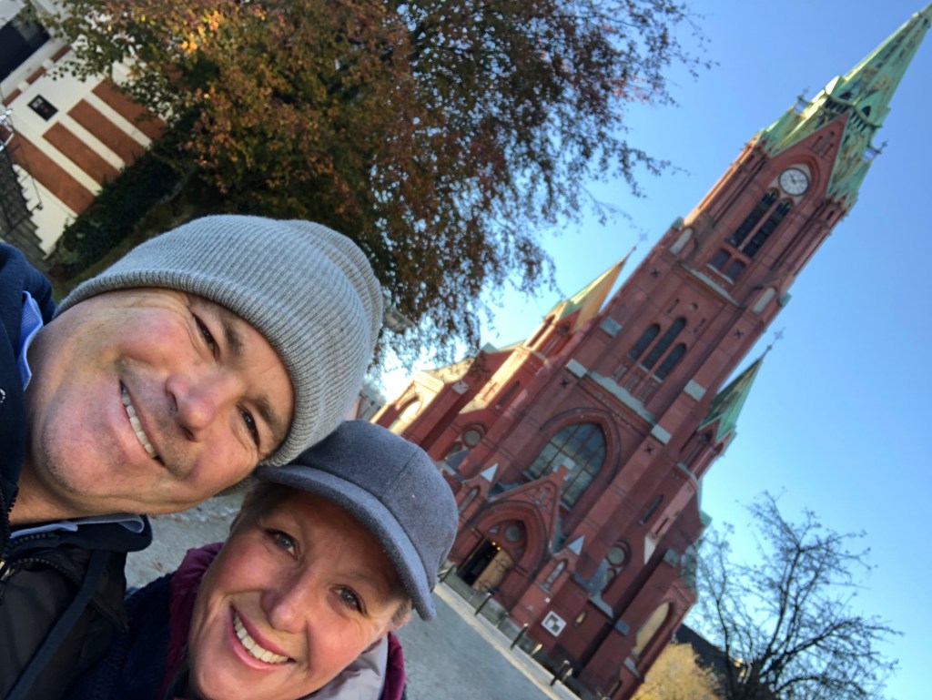 As we traversed the city we circled the central lake called Lille Lungegardsvann. We saw white swans and other types of birds – a couple of types of gulls, that again seem huge compared to ours, as well as ducks, pigeons etc. The swans were the highlight.