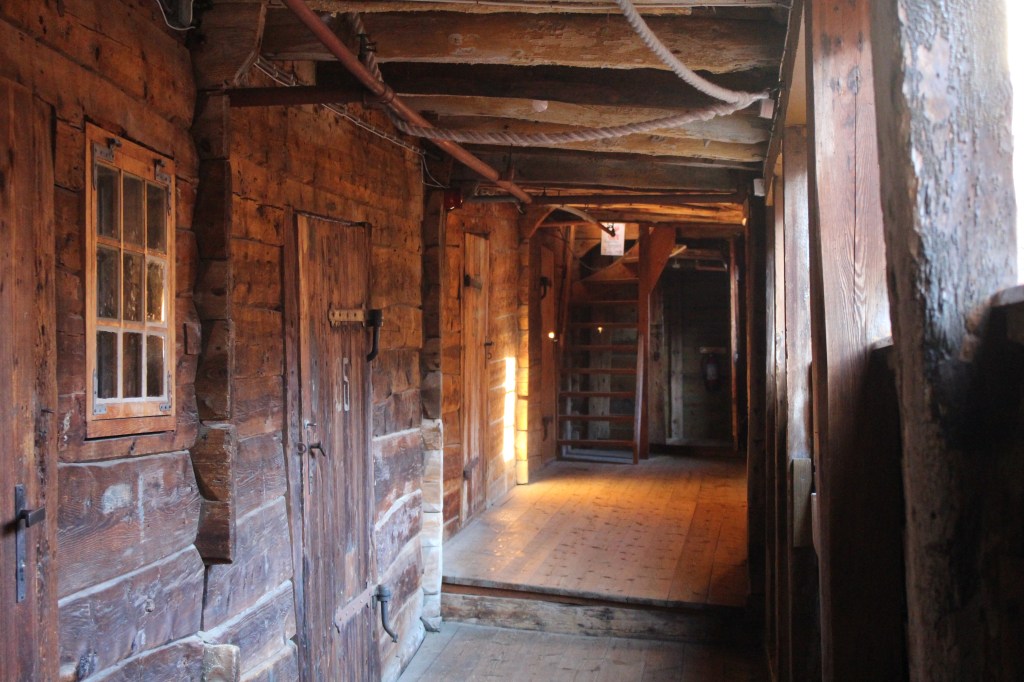 Walking through this area was quite amazing. The wooden buildings were close together. Even the street was ‘paved’ with wooden boards. There were hoist houses preserved which showed how goods would have been raised and lowered from the loft warehouse spaces. Today there are shops and galleries behind the heavy wooden doors that line the three levels of wooden corridors.