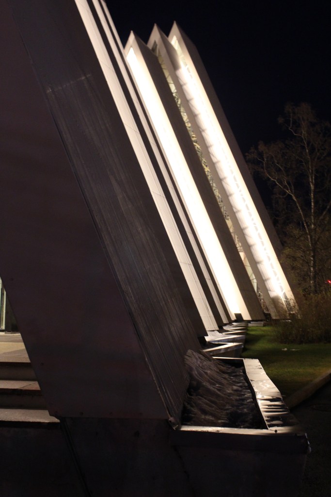 Apart from not actually being a cathedral it was an interesting building from an architectural point of view. In reality it is an Evangelical Lutheran church building however many denominations utilise it. There are on average 1.5concerts held there every day of the year. It was designed with amazing acoustics so is used for non religious concerts as well. Originally it was also to function as a bomb shelter during the Cold War.