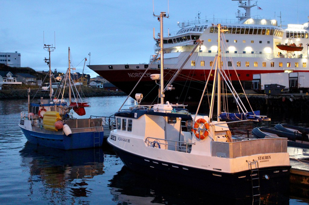Mageroya translates to ‘meagre’. Whilst the land may be meagre, the ocean is not. It is the richest area for fishing in the world. Honningsvag itself is therefore a busy fishing port. 1/3 of all the Royal King Crab in Norway come from the local fishery here. The fishery also produces 40,000tons of fish per year. The Russian and Norweigan governments have a cooperative approach to ensuring that migrating fish stocks remain plentiful and that over-fishing does not become an issue for both countries. Fish from this region is placed directly onto flights to Tokyo and is received by top sushimi chefs only 18hours after being caught!