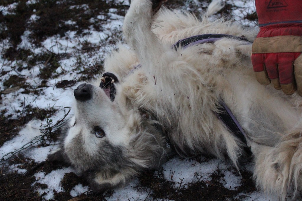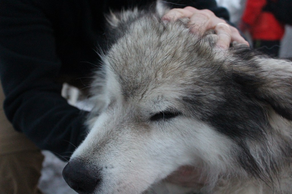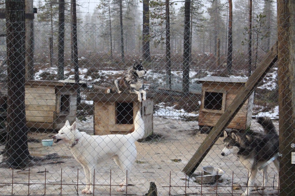 Huskys are so excitable! The lucky couple were eager to go for a walk, while their brothers (and the odd sister) were rather jealous and let us know about it. Usually by this time of year they are taking visitors on sledding experiences, but this year the season has yet to start so they are having a bit more ‘kennel time’ than usual. One of the handlers was telling us that a couple of weeks ago the temperature dropped down to below -10 so they put hay in the kennels for the dogs to say warm. This week the dogs have been busy digging it all out because they are too hot.