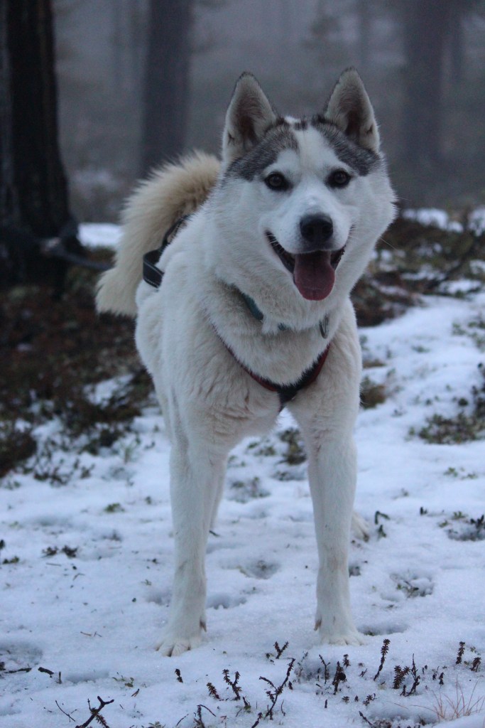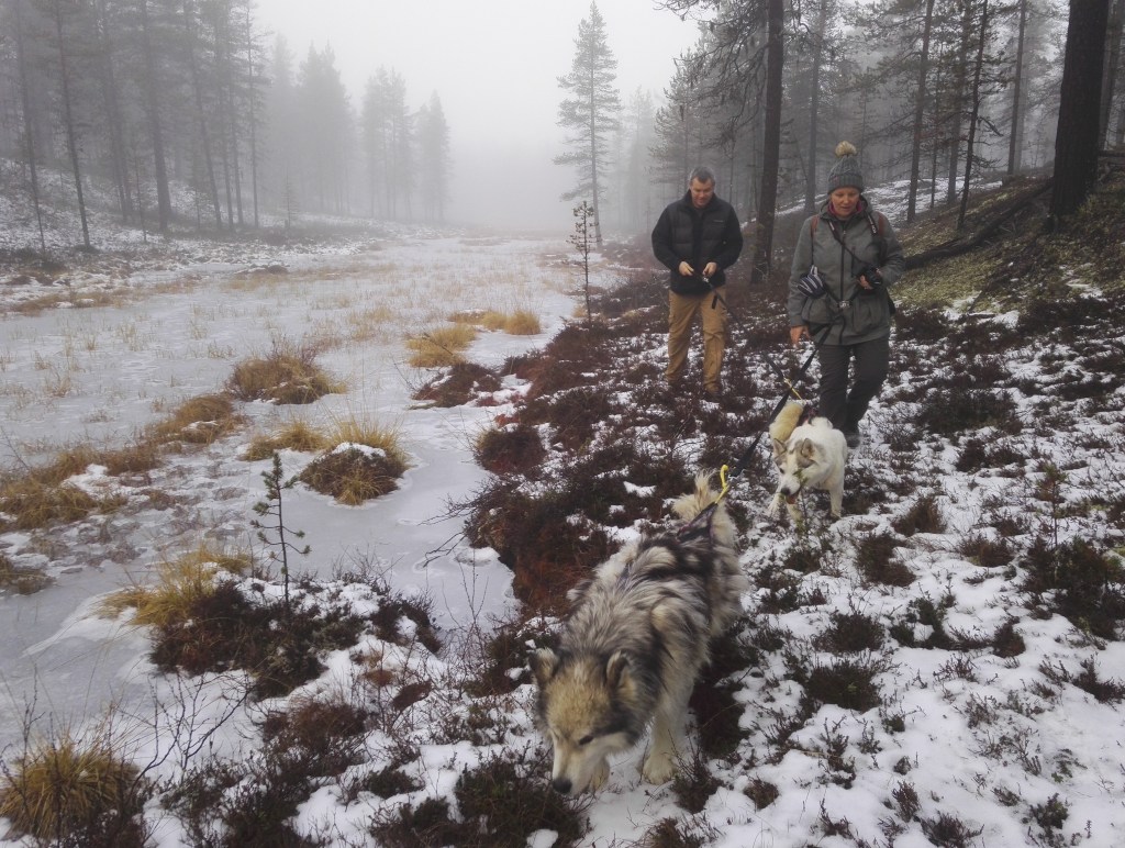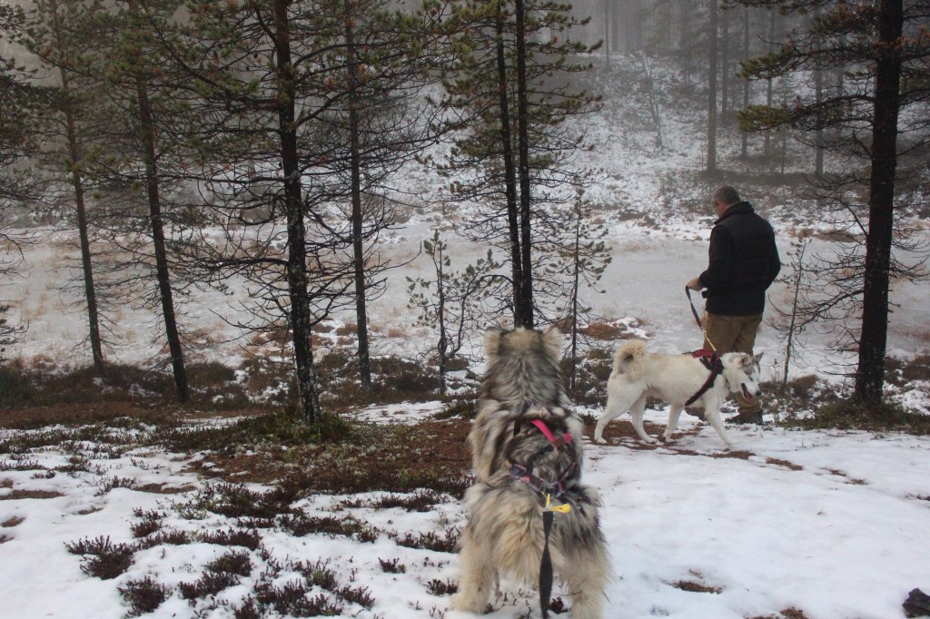Huskys! We had an awesome morning this morning out hiking with huskys. Our adventure started just after breakfast. Janne met us with … and we walked over to the ‘Husky Farm’ where we met our other companions for the morning. My fur ball was Uhku – a 4yo Alaskan Malamute/Siberian Husky cross, Toivo was Andy’s handsome fella and Pena is Janne’s dog and striking leader who, if I remember correctly, has Samoyed breed in him.