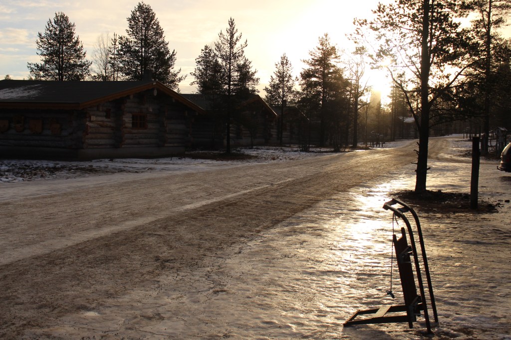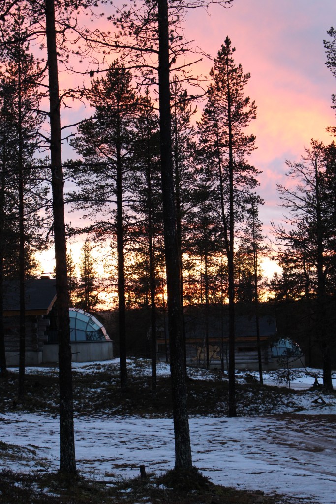 If you were expecting something about Aurora’s I’m sorry to disappoint, however today we have seen the sun and blue sky and been treated to a gorgeous sunset. This blog comes to you from a window seat of our gorgeous cabin as I look out across what’s left of the snow at the pink and gold sky. The colours are reflecting off the ice and the pink glow is beautiful. It’s been days since we’ve seen the sun and I had to strongly resist the urge to throw myself onto the ground and worship the golden rays! I did resist, although the ice nearly took care of that for me as I raced out in my long johns camera in hand to take some glorious pictures.