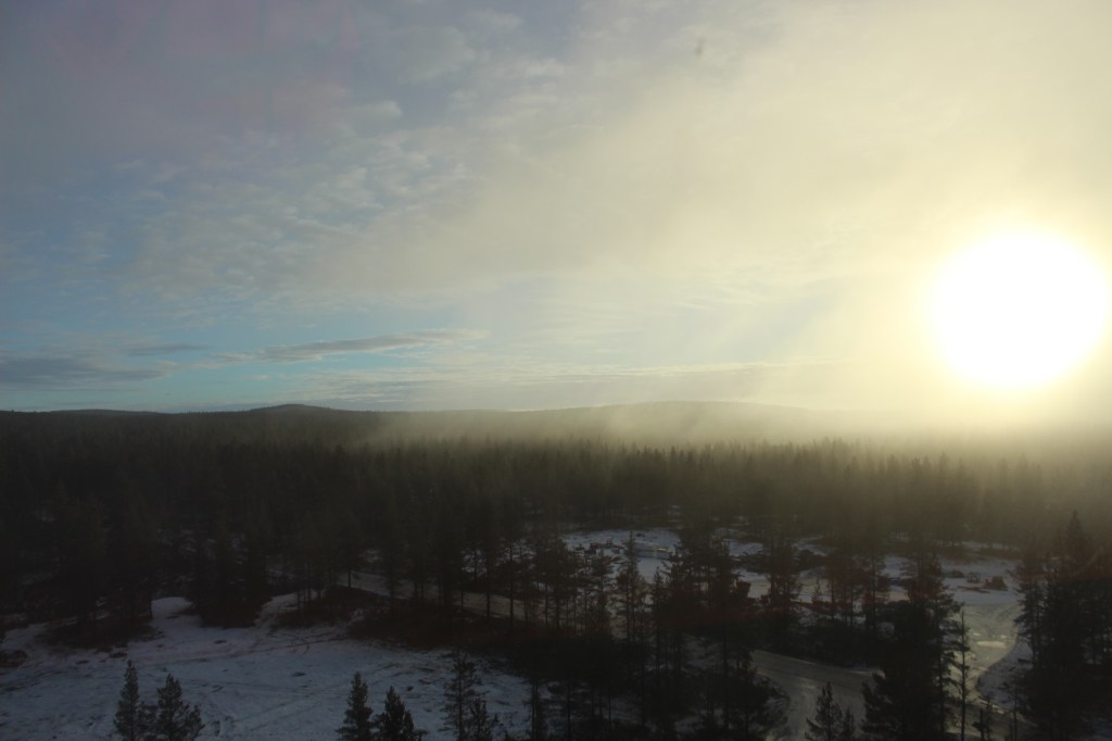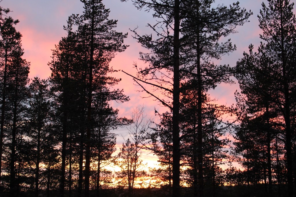 The sunset was complete by 3:30 and we now have the blue arctic light that will linger for a few hours until darkness. We have clear skies at last, however the aurora indicators are low. Still, we will hang around in the dark forest, camera ready just in case! Our App will indicate the most likely time to see any activity.