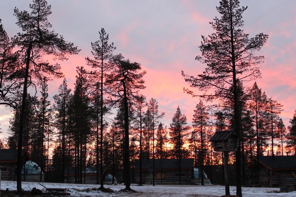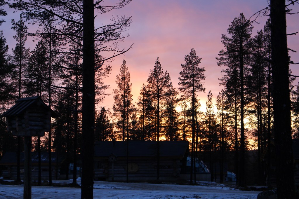 Housekeeping arrived just after us so we went for a walk through the forest to have lunch before returning in time for a sauna and view the beautiful sunset.