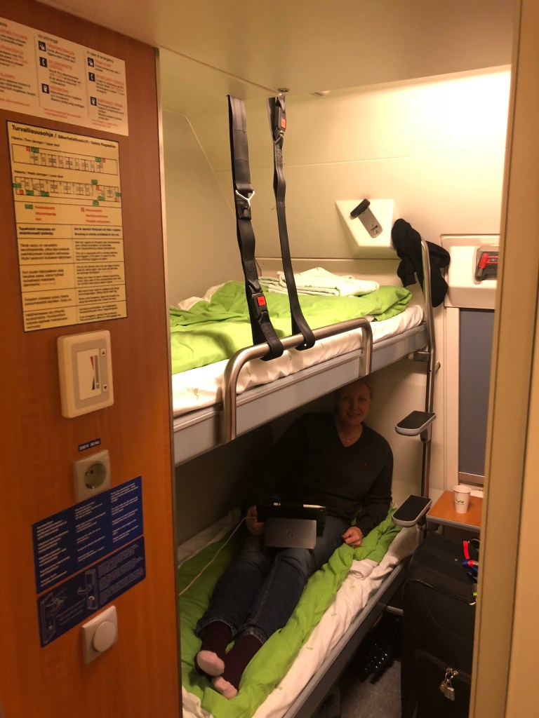 We boarded the train and explained our situation to the conductor. He checked his room list and whilst our original cabin number would be occupied, he did find one that was free all the way to Helsinki and allowed us to use it! Whilst we could probably have bluffed our way into a cabin after all, we felt much better having made the honest choice and legitimately boarded the train.