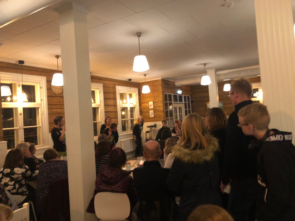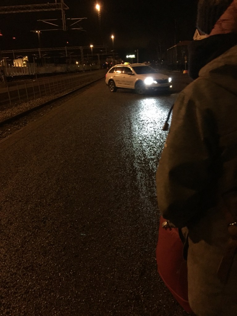 I will leave you with this latest twist…we have stopped at Oulu station and been sitting here for quite some time. Andy has just come back from investigating, and the train has just been boarded by hundreds of teenage girls, who seem to be returning from some big cheerleading event – I kid you not! The cabin where we bought the cheap seats is full of giggling teenage girls. The sleeper carriage where we are has been boarded by at least 50 more. With the door closed, all is quiet…the conductor is the hero of today’s story!