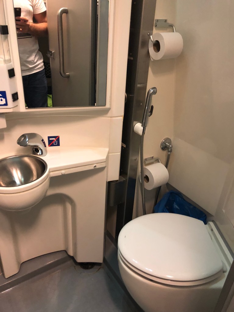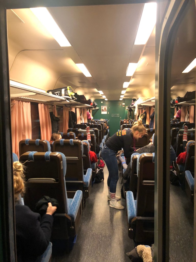 We saw people heading over to the train on platform 2. So we thought we’d follow. We found a carriage and seats corresponding to ours, and settled in.