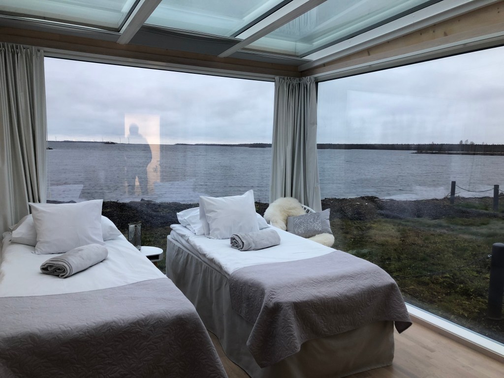 Ok, so it is 6 hours since we arrived in Kemi and it seems there is not actually anything here. The hotel is a building site and there are no activities that we can do. We can totally see the potential and it is an ideal WINTER wonderland. We checked in and discovered that we are the only ones here, and there are no other guests expected until December. Quite why Bentours – ‘The Scandinavian Specialists’ would include this on a tour before December we really cannot understand. The natural attraction is the Bothnian Sea which freezes and the Sampa ice-breaker that comes to the area. There are plenty of activities to do when it is in town, but that again is not until December. A snow Hotel is built here also which would be fascinating to visit. Even without the unusual weather conditions, this area is pretty much closed down. The cabin itself is well appointed and would be ok, but honestly, we would have to sit here and do nothing for two days. The lady at the front desk even said, “sorry, but there is nothing here and on Sunday even the shops will be closed”.