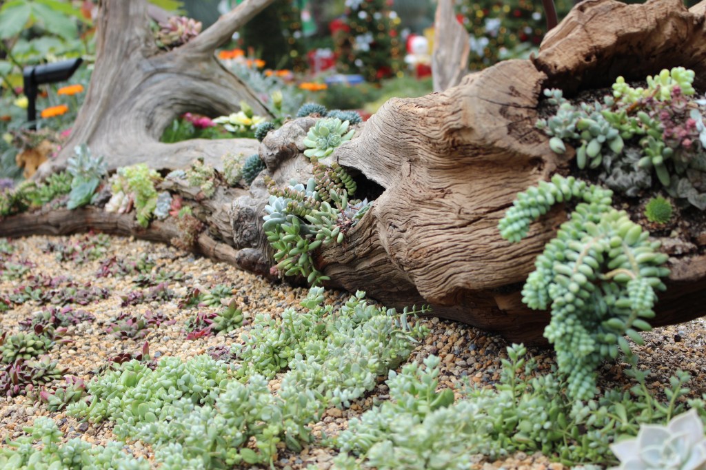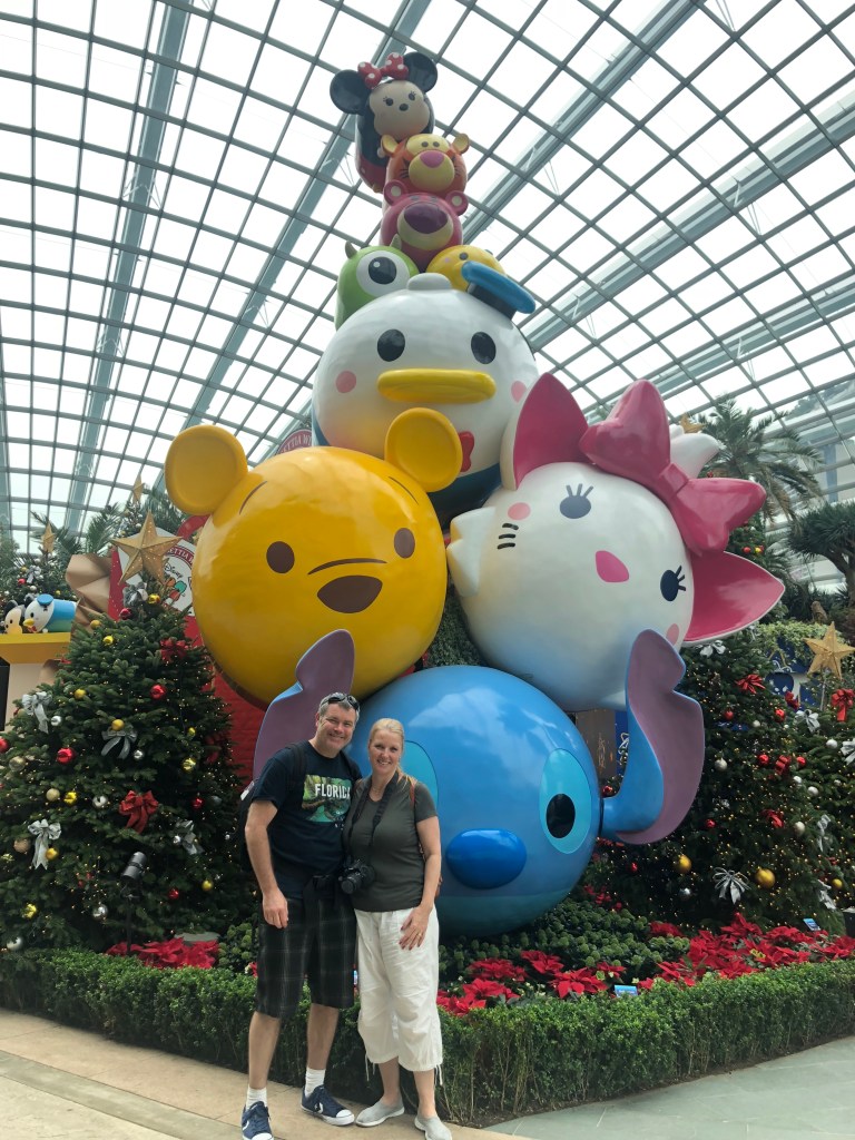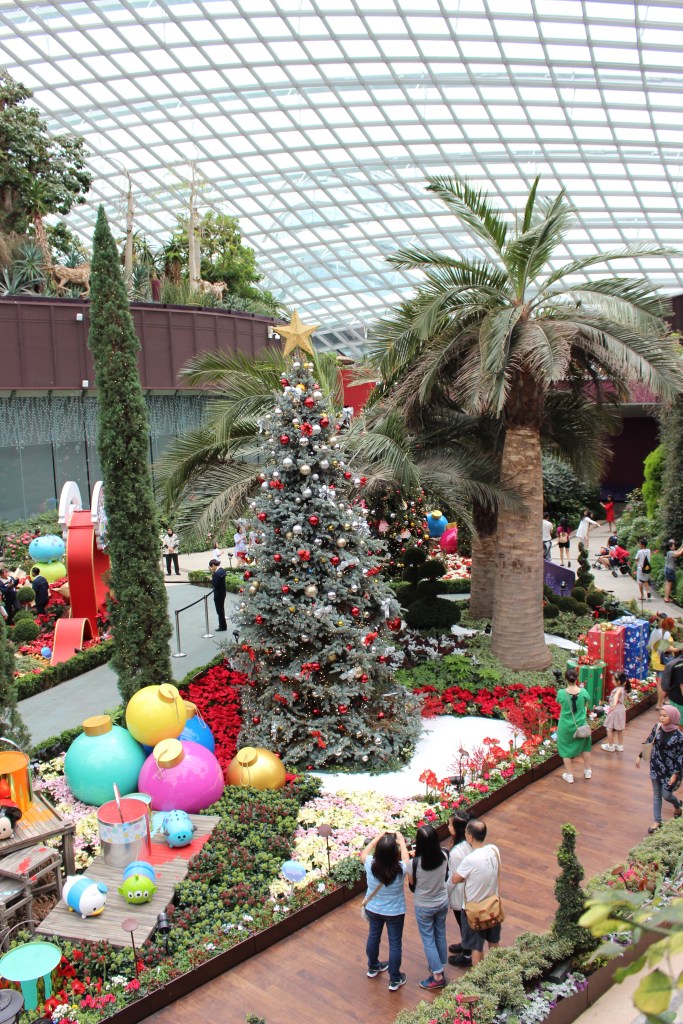 The flower dome recreates the climates of various areas around the world all within the one big space. From arid desert to the Aust bush and then also rainforest areas of the world. A seasonal display of Christmas trees and Disney themed decorations was also in set up within the dome. It was very colourful and very photogenic!
