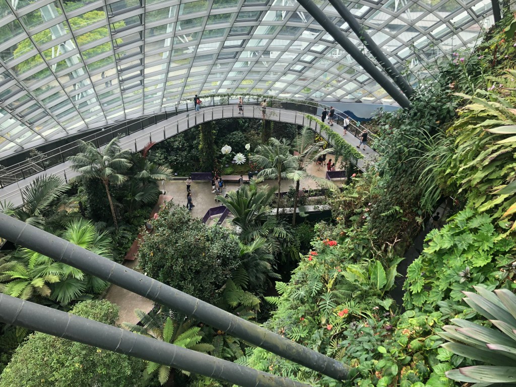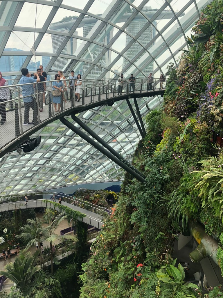 The Cloud Forest features a 35m indoor mountain covered in lush vegetation that is representative of the mountain forests from around the world. The plant life also includes rare and protected species being preserved and maintained in a perfect environment to thrive. There is what is claimed to be the worlds tallest indoor waterfall cascading from the top of the mountain and the various walkways and gantries provide up close viewing of the full scenery. Within the mountain are a couple of permanent exhibitions and at the base of the mountain there is an exhibition that deals with climate change and environmental management. It’s bringing a message to a part of the world that is still perhaps a bit behind with regard to use of plastics and pollution levels, however it is a step in the right direction.