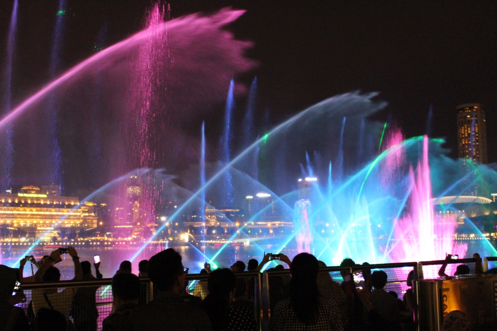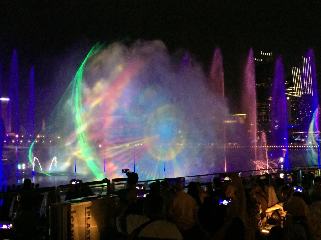 The light show was amazing. Timed fountains, light images, lasers and all to dramatic themed music. It was definitely worth making time to see it. There are 3 shows a night on the weekend and 2 per night during the week. No matter when you come to Singapore you really cannot miss it.